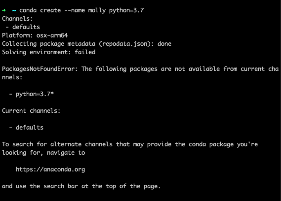 [Error 해결] M2에 아나콘다 python 3.7 가상환경 생성